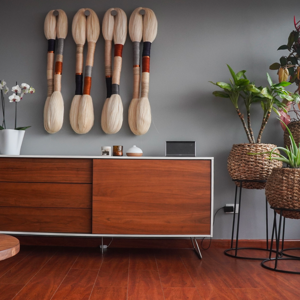 Las texturas orgánicas y formas étnicas fueron mi inspiración, usando una base de color sólido como el blanco, gris y chocolate.